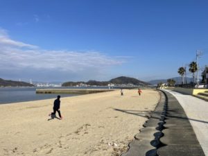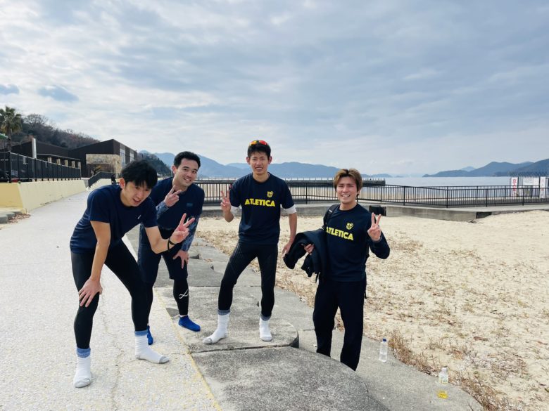 天気にも恵まれ、瀬戸内海を横目に、サーキット(30m往復×12種目)と、エンドレスリレー(50m往復×10本)を行いました!🔥